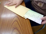 広報誌にチラシを数枚挟み込み、近隣住居のポストに投函していきます。しっかりときれいに入れ込むことに気を配り、スムーズに投函していけるように頑張ります。