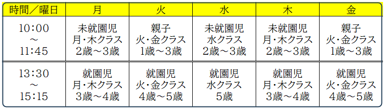 リズム、体操、机上活動、運動プロラム、工作、感触遊び、ごっこあそび、ゲームなど